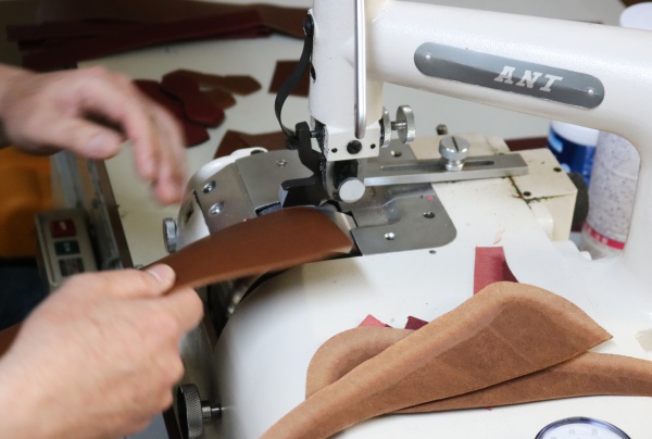 このとき、ミシンなどを使って縫製を行いますが、革と革が重なった部分が厚ければミシン針は刺さらず、縫製することはできません。