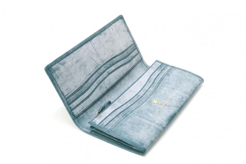 二つ折り財布でありながら、長財布のような収納力を持たせています。