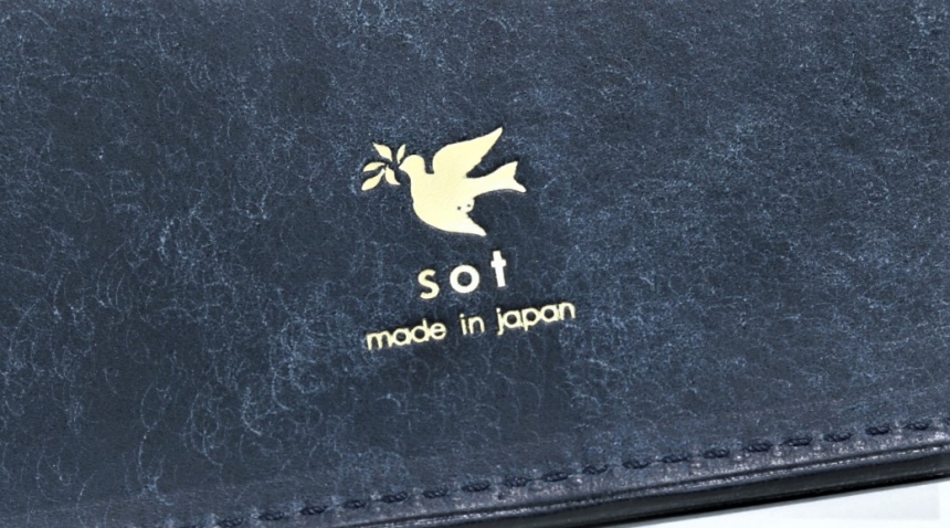 また、ペンケースの底面にもsotのロゴマークが箔押し刻印されています。