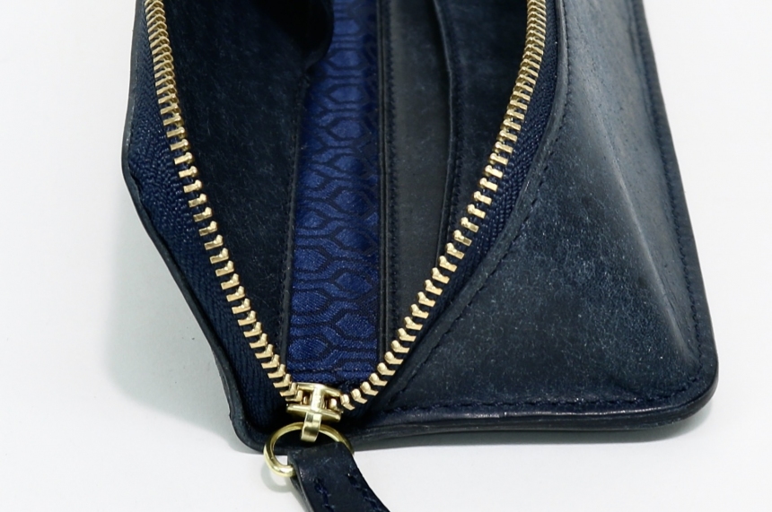 山梨県は甲州地方で作られる日本伝統工芸品のこの裏地は、縫い糸の密度が非常に高く織り込まれており、手触りも滑らかで上品な印象も与えてくれます。