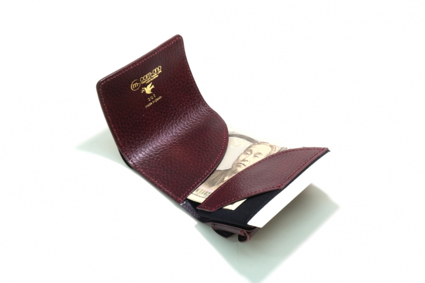 さっぱりとした表情と質感を持つ、ニューヨークレザーを財布の内側に採用しています。