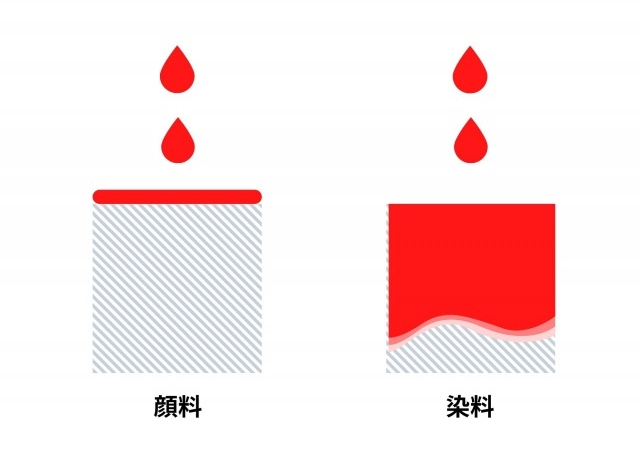 顔料は水や溶剤に溶けない性質で、あくまでも表面上に色をつけるもの。